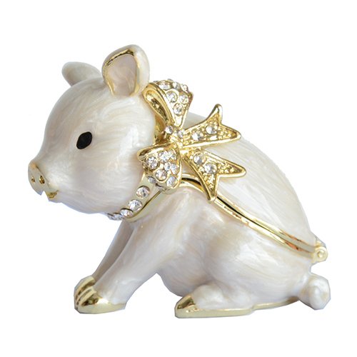 Trinket Box Enameled Animal Figurine Collectable Jewelry Ring Holder Organizer Pig