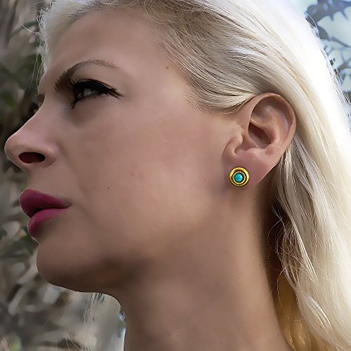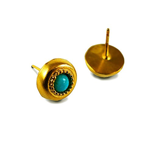 -. Title : 12mm Gold- Plated Handmade Button Stud Earrings & 5mm Cabochon Cut Natural Stone Turquoise Gemstone (Nickel Free) Southwestern Style
