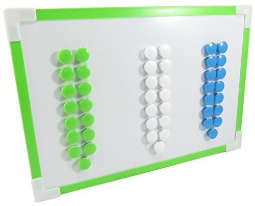 - THE SPECIFICS: Set of 3 x 15 colored dot magnets (.5" x .5") in a bright neon blue, green, and white. Dry erase board is for demonstration purposes only and not included.