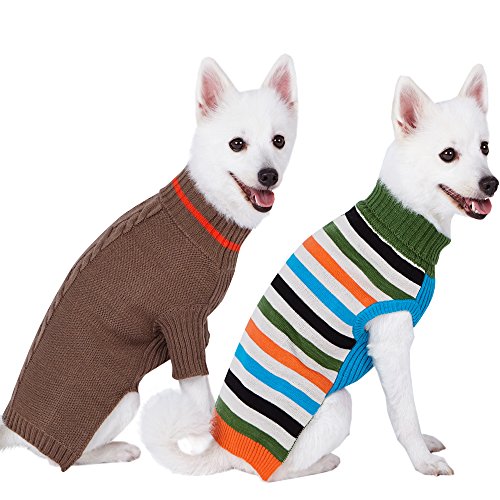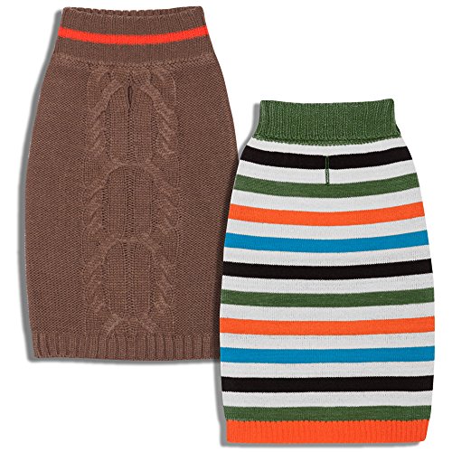 Studio : Blueberry Pet Publisher : Blueberry Pet Binding : Misc. Product Description Put those cool tone shades of dog sweaters on your furry friends with love and style this season! Those 2 sweaters would let your dog step into warmth and coziness during harsh winter walks. At Blueberry Pet, we totally agree that our furry friends just need the extra care and warmth during certain season like late fall and winter time. Let's start with the striped sweater: various cool shades of stripes are knitted onto the grey background. The second one is a beaver brown cable knit timeless piece, which is definitely an everyday item that your royal friends could wear. Buying this value pack means you would get more options for the most active member in your family! The canine friends are all set to go! 0