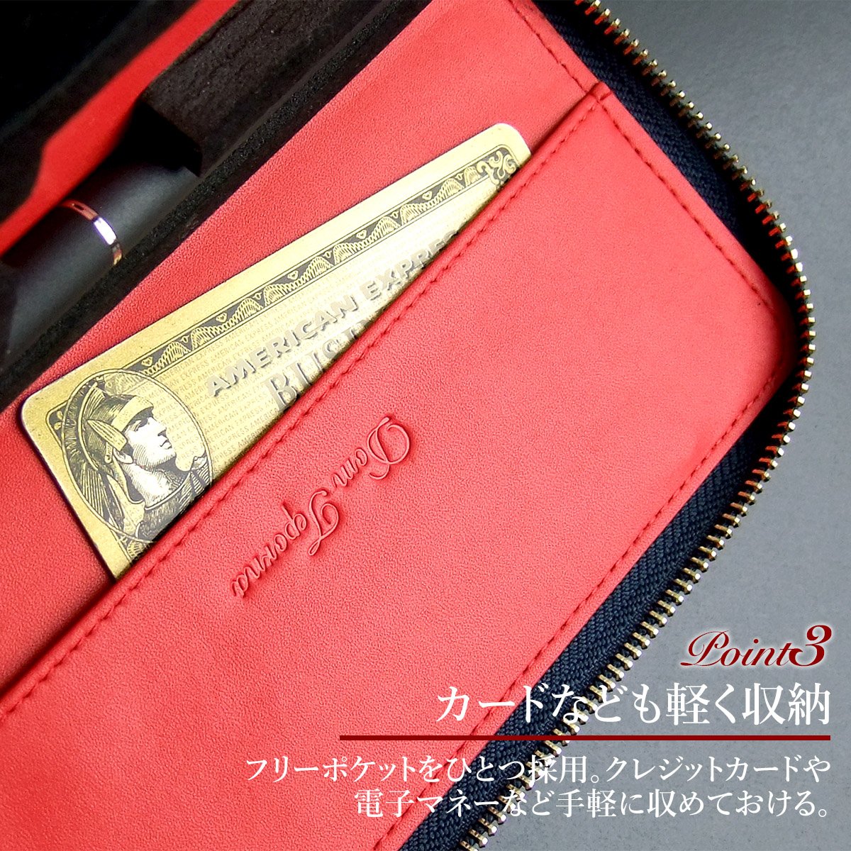 It also has a free pocket that also allows easy storage of business cards such as credit cards and business cards.