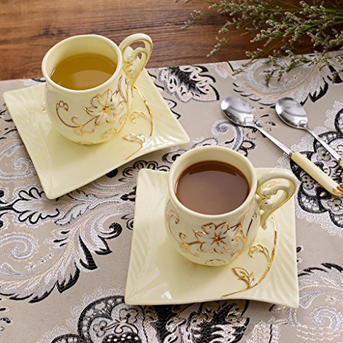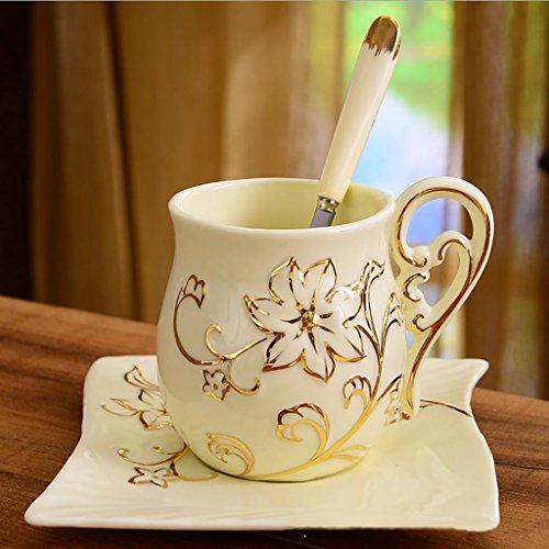 -. Brand : QIN -. EAN : 6035654643536 -. Feature : Material: Bone China / Size: saucer diameter 15cm, Cup-caliber 9.5cm, high 11cm / Contains 1 Cup, 1 plate and 1 spoon / Tea or coffee is a good choice / Can be used as a gift -. Label : QINQIN -. Manufacturer : QINQIN -. MPN : 6035654643536 -. PartNumber : 6035654643536 -. ProductGroup : Kitchen -. ProductTypeName : KITCHEN -. Publisher : QINQIN -. Studio : QINQIN -. Title : QINQIN European ceramic coffee cup high-grade gold tea tea set (1 cup 1 disc 1 spoon)