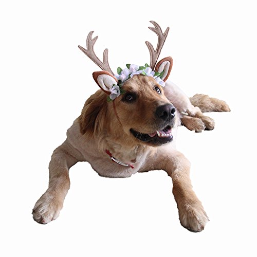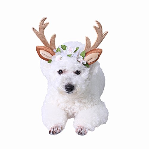 -. Title : Pet Cat Dog Holiday Cute Antlers And Flowers Hat Pet Accessories