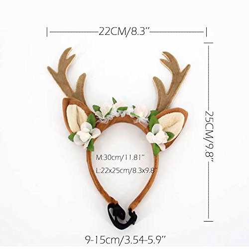 -. Feature : SOFT-super fabric,feel super comfortable / SIZE-S:19*21CM,can adjust 6-8CM. M:22*25CM,can adjust 9-15CM. L:22*25CM,can adjust 9-15CM. / DESIGN- Antlers designed to make pets look more cute, product quality light, easy to wear and will not put pressure to pet. / QUALITY - We pet supplies manufacture, specializing in the production of pet supplies. Quality guarantee. / Please measure the size before buying.