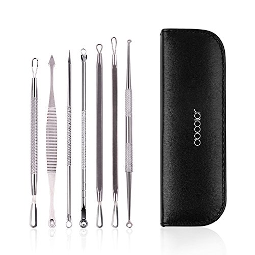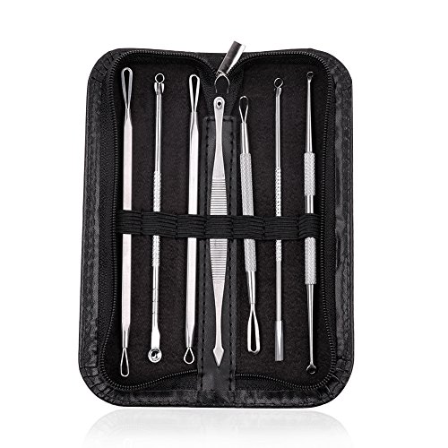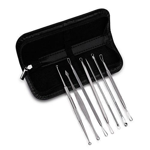 Docolor 7 Pieces Blackhead Remover Pimple Acne Extractor Kit - Professional Facial Blemish Treatment Tools with Leather Case