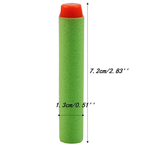 - Feature : Material: Sponge + Plastic / Size: app.7.2cm x 1.3cm/2.8''x0.51'' (LxD) / Quantity: 100 Pcs / Very safe bullets which can also be launched to far distance / When fired out, the bullet can make whistle sound, very interesting