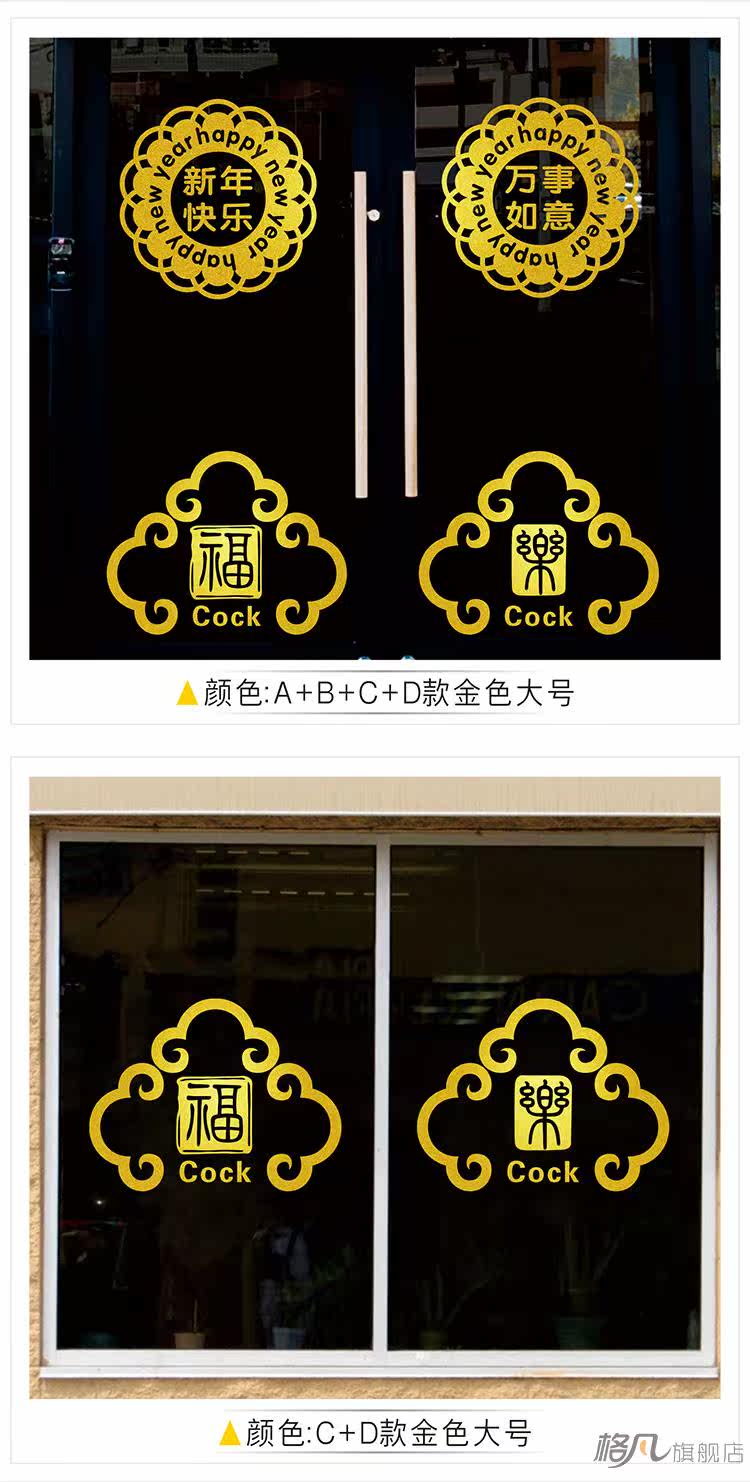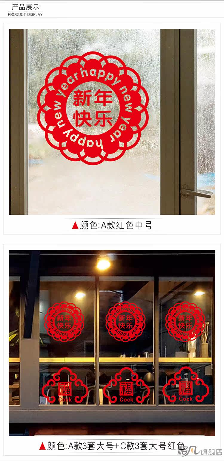 新年装饰店铺橱窗布置玻璃墙新年贴纸狗年过年窗花春节装饰用品