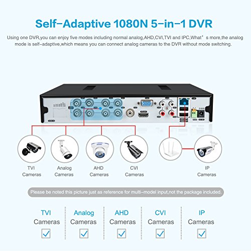 HISRAY 8CH 1080N AHD DVR 5-in-1 Hybrid (1080P NVR+1080N AHD+960H Analog+TVI+CVI) CCTV 8-channel HDMI QR Code Scan Easy Remote View Email Alerts Home Security Surveillance Camera System(No HDD)