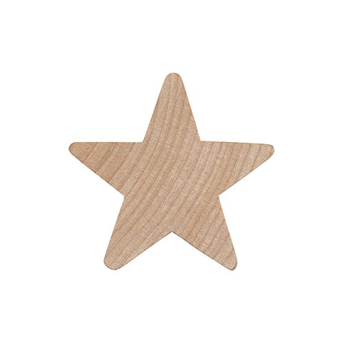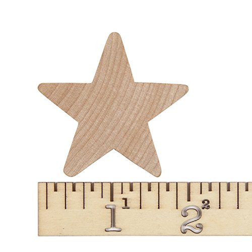 - Large unfinished wood star cutout shape measures: 2" tall x 2" wide x 1/4" thick