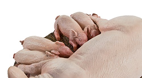 -. Feature : Sows, or female pigs, usually have 4-12 piglets in a litter. Sows are very protective of their young and most piglets stay with their mothers until they are completely matured. This sow has four adorable piglets who are tired and hungry after an afternoon chasing each other around. / Part of the Safari Farm Collection, which is home to dozens of lively, professionally-sculpted farm animals that will sweep your imagination to a tranquil, country frame of mind. These figurines are suitable for collectors, enthusiasts, teachers, as well as kids. / All animals from the Safari Farm and Winners Circle Horses lines are designed on the same scale, so the sets can be combined for extra fun. / Made with Safari Ltd's industry-leading standards, this product has been individually hand painted, features solid construction from quality, safe, phthalate and lead-free materials, and includes an educational hangtag in 5 languages. / Lifelike and realistic from hoof to curly tail, this sow and her piglets measures 4.1"L x 2.7"W x 1.4"H.