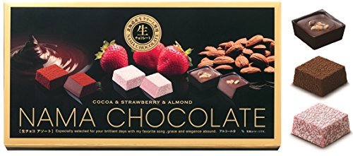 原材料:ココア味:チョコレート(砂糖、カカオマス、植物油脂、その他)、生クリーム、カカオマス、洋酒、ココアパウダー、植物油脂/ソルビトール、乳化剤、アルコール、香料、(一部に乳成分・大豆を含む) イチゴ味:チョコレート(砂糖、ココアバター、植物油脂、全粉乳)、生クリーム、乾燥イチゴ、リキュール、還元パラチノース、植物油脂、マルトース、クリームパウダー/ソルビトール、トレハロース、乳化剤、アルコール、香料、着色料(クチナシ)、酸味料、(一部に乳成分・大豆を含む) ナッツ味:チョコレート(砂糖、カカオマス、植物油脂、ココアパウダー、乳糖、ココアバター、その他)、生クリーム、洋酒、ヘーゼルナッツペースト、アーモンド、砂糖、植物油脂/ソルビトール、乳化剤、アルコール、香料、(一部に乳成分・大豆を含む)