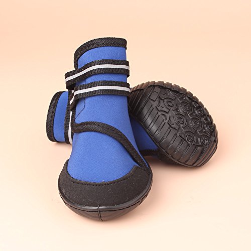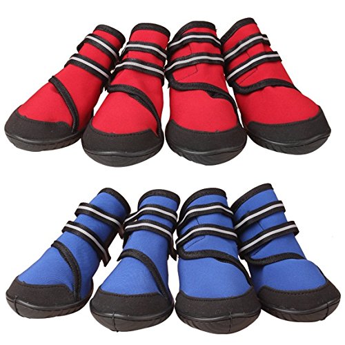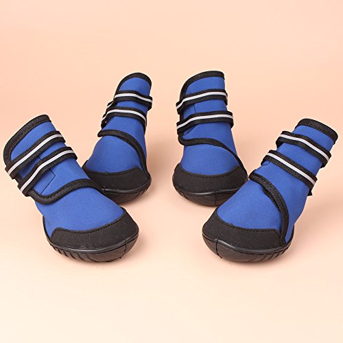 -. Binding : Misc. -. Brand : Colorful House -. Color : Blue -. Feature : Molded Oxford bottom: durable and waterproof / Elastic straps with reflective tape for safely walking at night / Available in four colors: Blue, Red / Listed size measurements are outside shoe sizes, not pet paw size / To choose suitable shoes for your pets, please consider 0.2-0.4 inches larger than foot length and 0.1-0.2 inches larger than foot width. -. Label : Colorfulhouse -. Manufacturer : Colorfulhouse -. PackageQuantity : 4 -. ProductGroup : Pet Products -. ProductTypeName : PET_SUPPLIES -. Publisher : Colorfulhouse -. Studio : Colorfulhouse -. Title : Colorfulhouse Waterproof Dog Shoes for Dogs Small to Large 4 Pcs