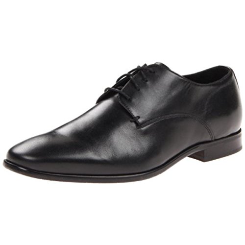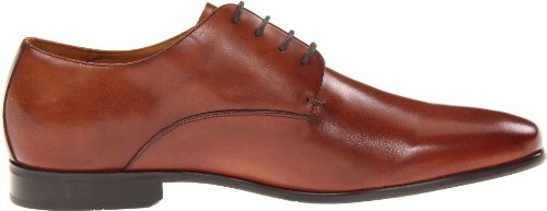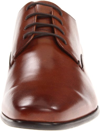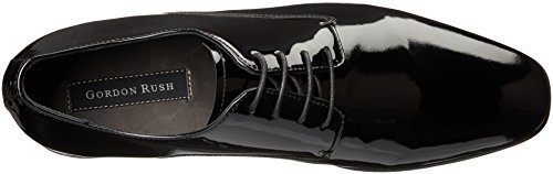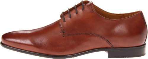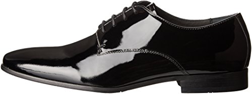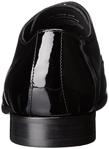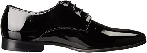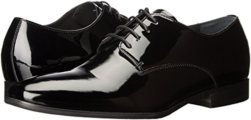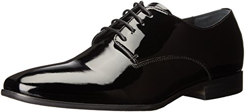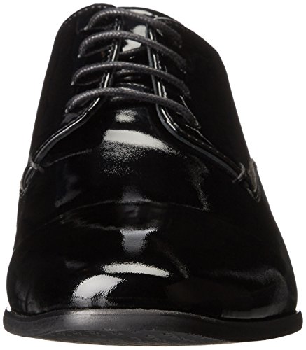 Classic lace-up oxford in glossy leather featuring blind eyelets and low stacked heel