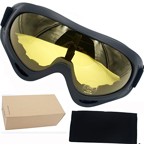 -. Feature : Frame is made from thermoplastic polyurethane elastomer (TPU for short).It can protect environmention, resistant abrasion,aging,oil, water and mold. / UV-400 lenses can filter ultraviolet and protect cornea and retina from damage.This impact resistance PC lenses is lightweight and high light transmittance. / Good breathable and perspective, windproof and dustproof goggles with elastic strap is adjustable and anti-slip,can fit for both adults and teenagers. / It has multipurpose outdoor sports, such as climbing,skiing, CS game, cycling, motorbike, kite surfing, jet skiing etc. / Package include:Beautyours Windproof Goggles*1,portable clothing bag*1