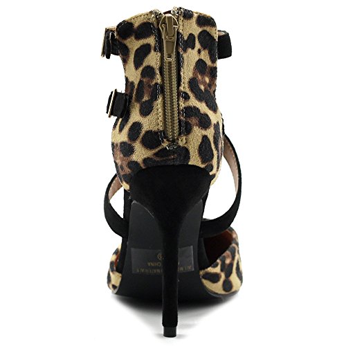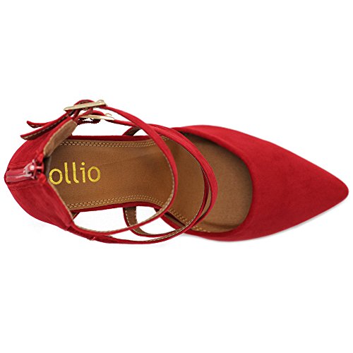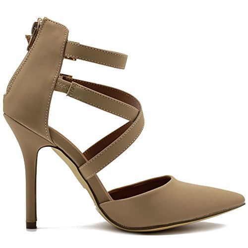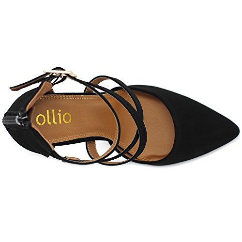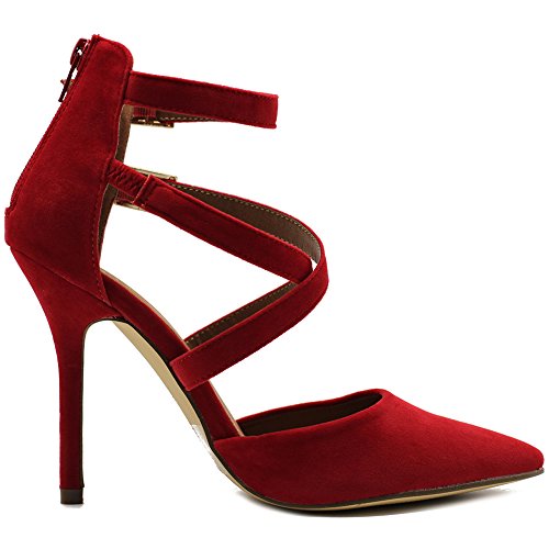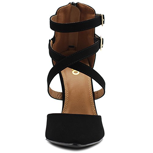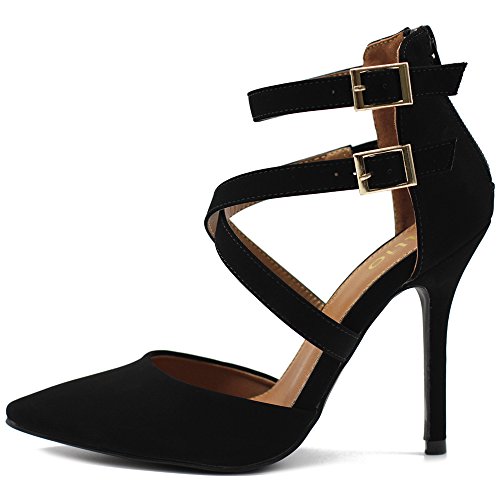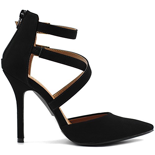 Ollio Women Shoes Cross Strap Back Zipper Stiletto High Heel Faux Suede Pumps