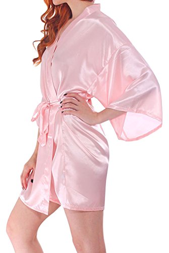 Women's Solid Color Satin Kimono Robe Short Sleeve Silk Bridal Robe, Pink