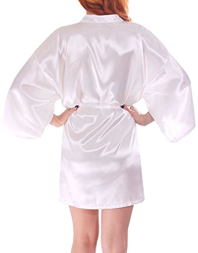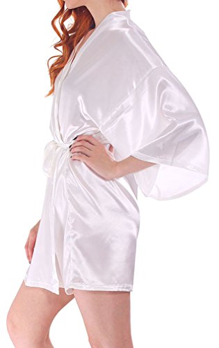 Women's Solid Color Satin Kimono Robe Short Sleeve Silk Bridal Robe, White
