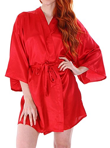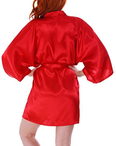 Women's Solid Color Satin Kimono Robe Short Sleeve Silk Bridal Robe, Red