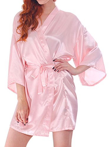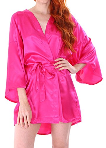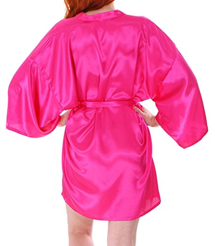 Women's Solid Color Satin Kimono Robe Short Sleeve Silk Bridal Robe, Rose, One Size