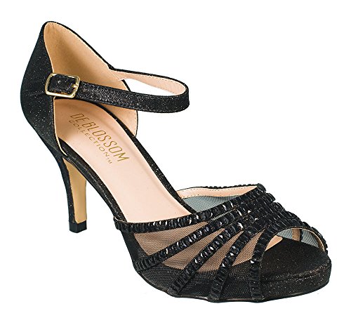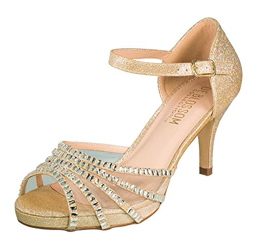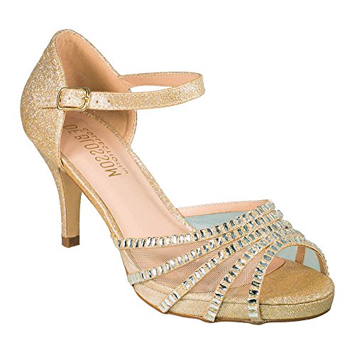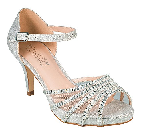 Roma-22 Sparkle Mesh Rhinestone Mid heel Prom Party Dress Sandal Shoes