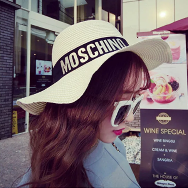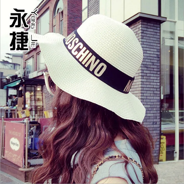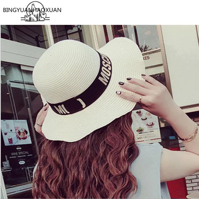 2016 돔 알파벳 파도 챙 밀짚 모자 챙이 넓은 해변 태양 여성 핫 스탬핑 문자 유럽 여름 태양 플로피