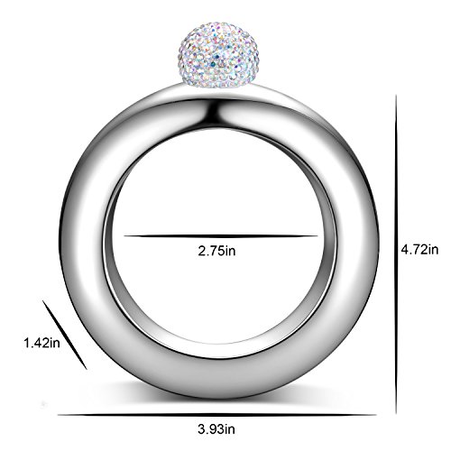 ? Item name: bracelet flask. ? Item weight: 6.7 ounces. ? Item capacity: 3.5oz. ?Certification:FDA LFGB. ? Item material: food grade 304 stainless steel. ? Item size: out dia:3.93 in,inner dia:2.75 in,height:1.42 in. ? Notice:Before the first use, be sure to clean the inside of the bracelet flask.