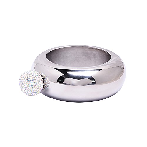 ? 1.Safe: Our bracelet flasks are made of high quality food grade stainless steel, and they passed the FDA ????and LFGB certification. ? 2.Comfortable: This kind of bracelet flask is very comfortable because its various parts are very smooth. ? 3.Beautiful: As you can see the picture, our bangle flask is very beautiful.But when you get it,you will find ????it is more beautiful than picture, because the various refractions cover up its own color. 4.Durable:We use vacuum plating technology and high quality raw materials so that the bracelet flask will not fade. 5.Unique:We inlaid hundreds of stones on the lid of bracelet flask, it's a unique gift for women.