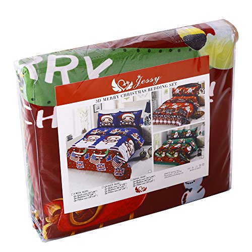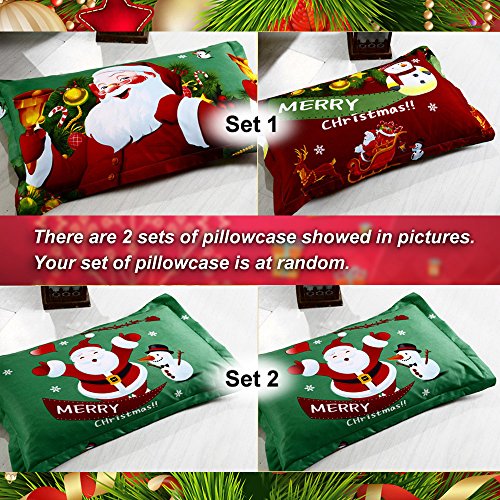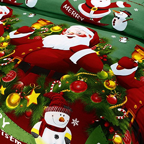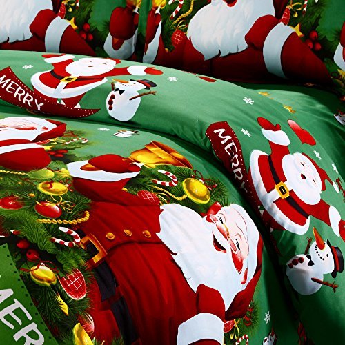 Anself 4PCS Santa Claus Bedding Sets, 1 x Duvet Cove, 1 x Bed Sheet, 2 x Pillow Case, Queen Size, Green
