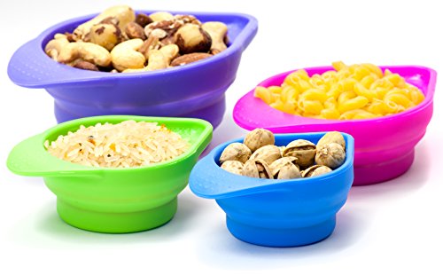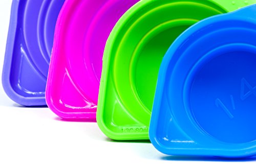 - INNOVATIVE DESIGN – Collapsible, space saving, nested design makes these the easiest measuring cups to store that you'll ever own. Flexible silicone makes pouring super easy, while eliminating messes.