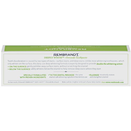 Bio-available peroxide starts working immediately to whiten teeth 5 shades.* Helps prevent teeth from re-darkening to maintain whiter teeth. New, refreshing Mint flavor. Breakthrough low-abrasion Citroxain® formula - whitens teeth beyond surface stains without scratching enamel or eroding the gum line.