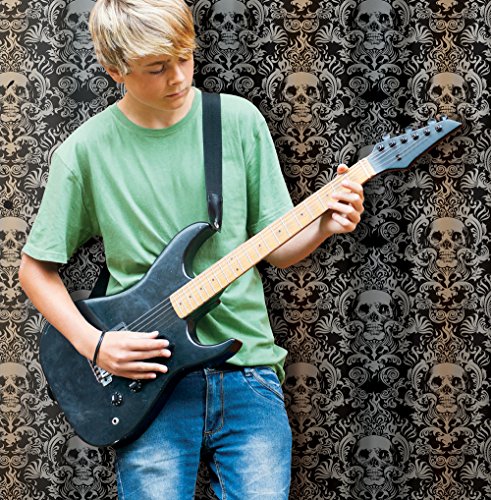 Chesapeake TOT47111 Luther Sand Skull Modern Damask Wallpaper