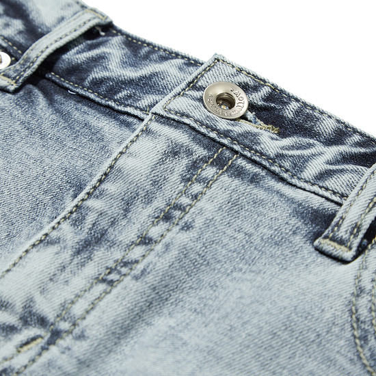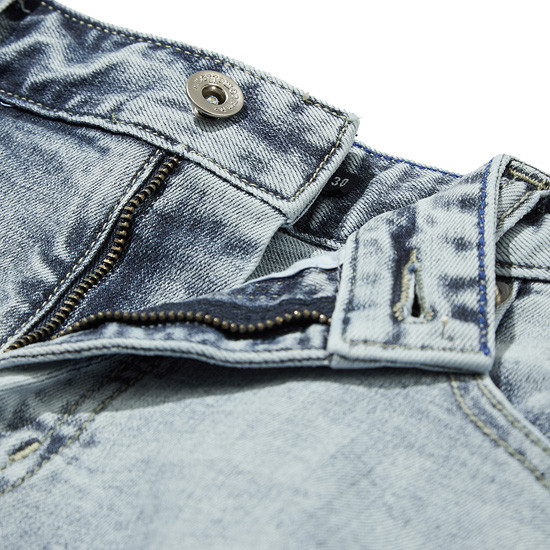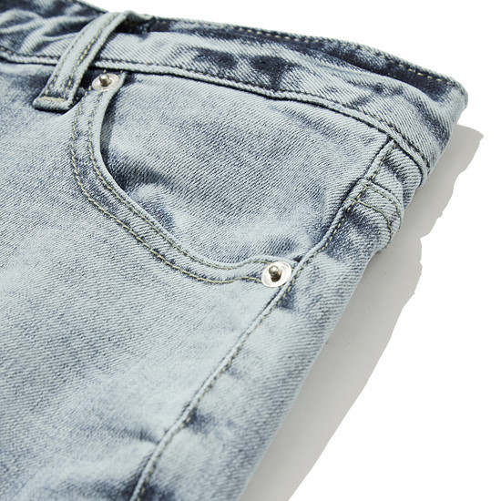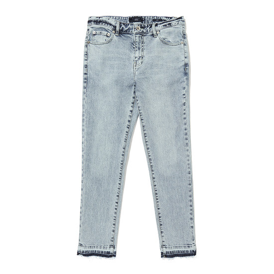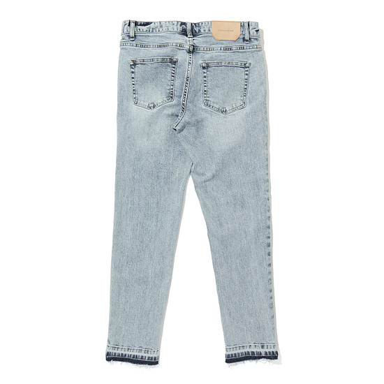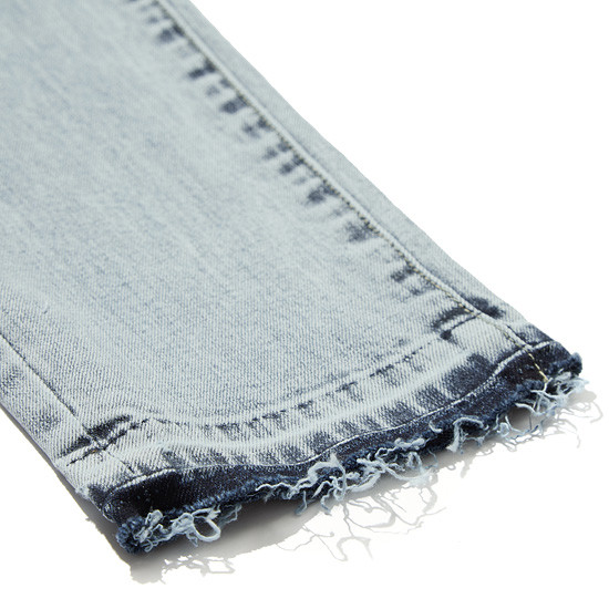 - 밑단 워싱 후, 해체하는 방식을 사용한 마감 처리.