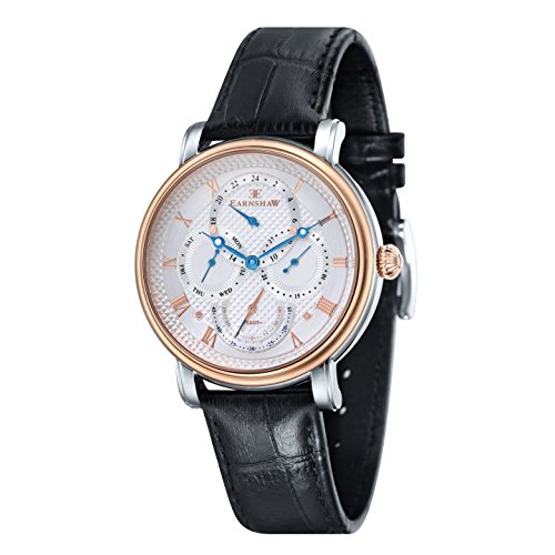 -. Title : Thomas Earnshaw Men's 'LONGCASEMASTERCALENDAR' Quartz Stainless Steel and Leather Dress Watch, Color:Black (Model: ES-8048-04)