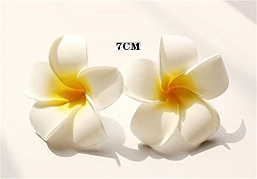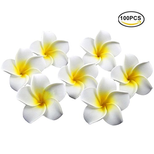 Plumeria Flowers Artificial Foam Diameter 2.7 Inch Rubra Gaobige Hawaiian Flower Petals For Wedding Party Decoration Christmas Tree (100 Pcs, White )