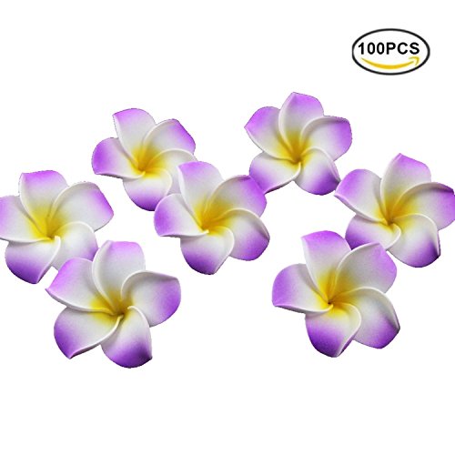 Plumeria Flowers Artificial Foam Diameter 2.7 Inch Rubra Gaobige Hawaiian Flower Petals For Wedding Party Decoration Christmas Tree (100 Pcs, Purple )