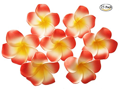 Plumeria Flowers Foam Artificial Diameter 2.7 Inch Rubra Gaobige Hawaiian Flower Petals For Wedding Party Decoration Christmas Tree (25 Pcs, Red )