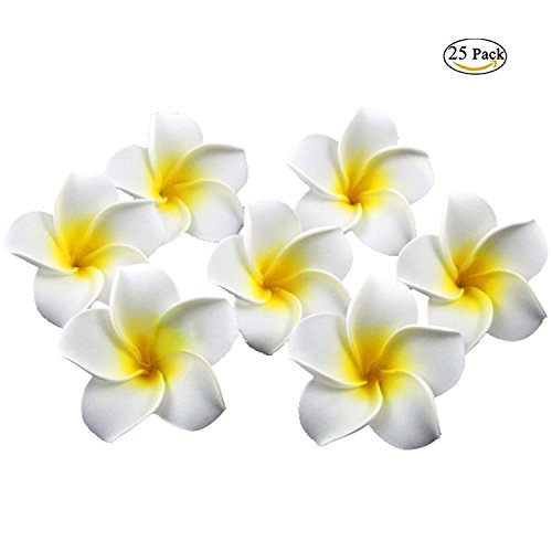Plumeria Flowers Artificial Foam Diameter 2.7 Inch Rubra Gaobige Hawaiian Flower Petals For Wedding Party Decoration Christmas Tree (25 Pcs, White )
