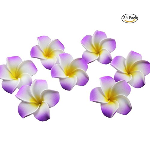Plumeria Flowers Artificial Foam Diameter 2.7 Inch Rubra Gaobige Hawaiian Flower Petals For Wedding Party Decoration Christmas Tree (25 Pcs, Purple )