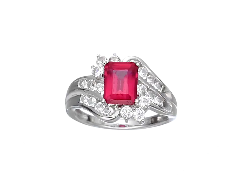 Sterling Silver Octagon Created White Sapphire Ring, Size 7