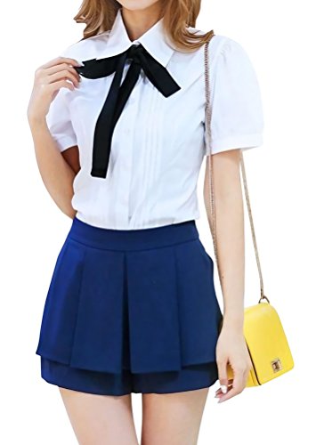 -. Feature : リボンとブラウスのコーディネートが可愛いらしい、ボウタイ付きのシフォンシャツです。 デイリーやカジュアルでもフォーマルなシーン(パーティや演奏会、コンサート)でも着回ししやすい1着です。無地でシンプルなデザインなのでスカートやパンツとの相性も良く、トップスインでもアウトでも着用できる丈になっております。 / ボトムスとしてスカートを選ぶ場合はミニのプリーツスカートやチェック柄、タータンチェックのスカート、ひざ丈・ミモレ丈のフレアスカート、マキシ丈ロングスカートと何にでも合わせることができます。またタイを外して黒のロングパンツ、ジーンズやデニム、ガウチョパンツ、ストレッチパンツ スキニーなクロップドパンツなどと組み合わせてもOKです / 上に羽織るものはジャケットやカーディガン、ベスト、コート、トレンチコートなどがおすすめです。コーデ次第でカジュアル、きれいめ、ガーリー、ロリータ、清楚系、森ガール系、クラシック系とスタイルを変化させることができます。 / レギンス タイツ ストッキングは勿論、ローヒール、ハイヒールのパンプスやブーツ、アクセサリーなどの小物(帽子 ハット 腕時計 指輪 ブレスレット ピアス ハンドバッグ)もあなたの「かわいい」を引き立てます。オールシーズン人気の商品なので、Amaoznランキングでも流行しています。 / 【Sサイズ(約)】着丈60cm 袖丈:58cm 【Mサイズ(約)】着丈61cm  袖丈:59cm 【Lサイズ(約)】着丈62cm  袖丈:60cm 【XLサイズ(約)】着丈63cm  袖丈:61cm 【素材】ポリエステル 【カラー】ホワイト ブラック ブルー