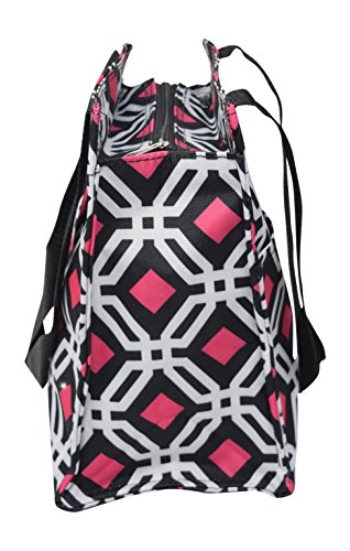 Reusable Zippered Top Insulated Lunch Bag (Black w/ Pink Diamonds)