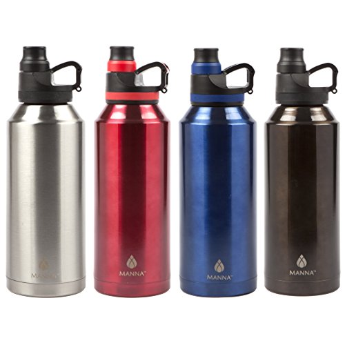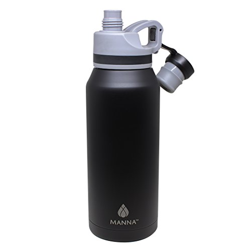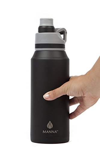 Manna Jumbo 32 oz Leak Proof Vacuum Insulated Water Bottle. Compared to plastic bottles, this stainless-steel container is safe to drink with and highly sturdy.