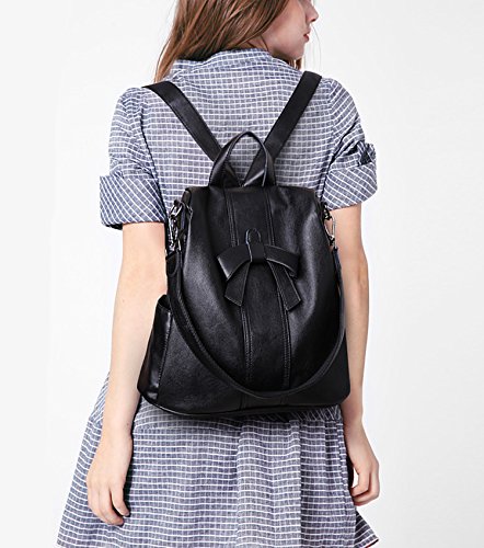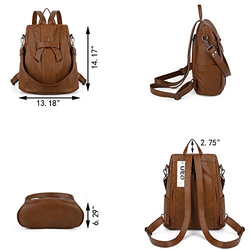 UTO Women Anti-Theft Backpack Purse PU Washed Leather Convertible Ladies Rucksack Bowknot Shoulder Bag
