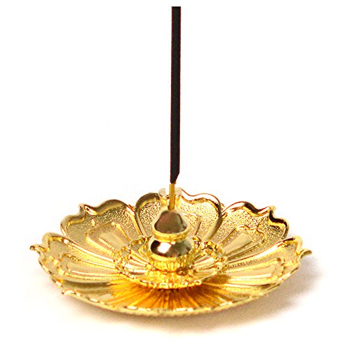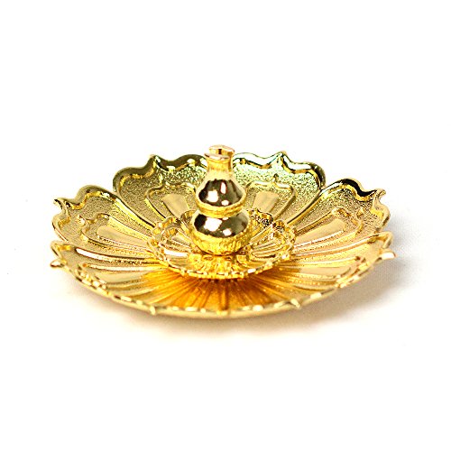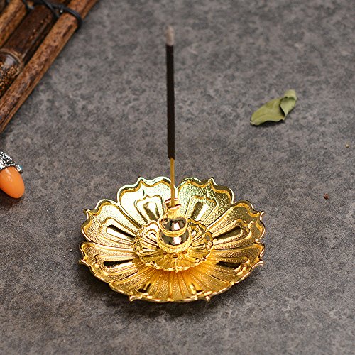 HJXL Lotus Incense Burner Holder Flower Shaped Censer Plate For Sticks Cone Home Fragrance Accessories (golden)