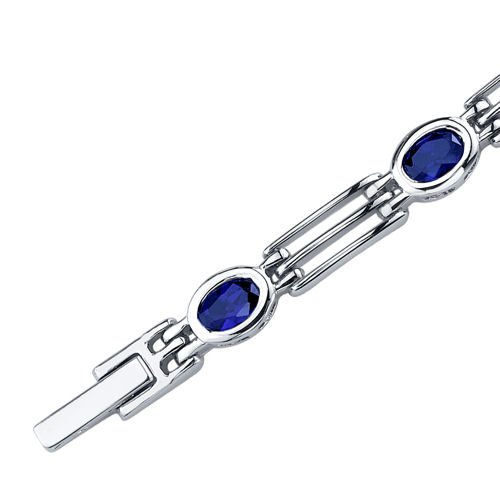 -. Title : Created Sapphire Bracelet Sterling Silver Rhodium Nickel Finish Oval Bezel Set