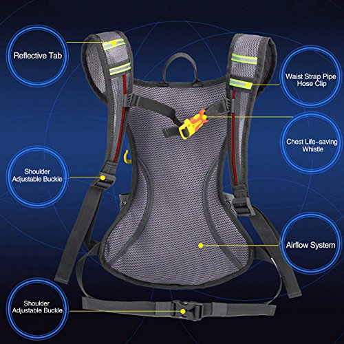 -. Feature : Integrated Breathable Mesh Pad:Adjustable chest and shoulder wide straps,thickening and soften back design. Straps for holding.Add waistband design, it can protect your waist,also can take loose change, key and some small tools / Air System Design:Thicker spongia,keep your back cool and dry and improves comfort; This item is super sutable for a variety of people and environments,such as hiking,cycling,mountaineering, travel,vacation, riding,rafting, fishing,trekking,marathon / High-Capacity: The Backpack can store your clothes, iPad, phones, map and other outdoor iterms. It also can using as a Hydration Pack.There is a hole on the straps for water pipe. / Lightweight Material: 300g weight,High-quality nylon fabric,attractive and durable. Import quality Polyester non-toxic environment,Compressive resistance to abrasion / ABOUT MASK You will get a mask as a gift. It fits above the ears and nose while still keeping the full neck covered. Perfect protection against cold, snow, wind and sun.