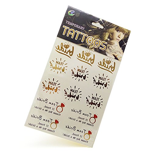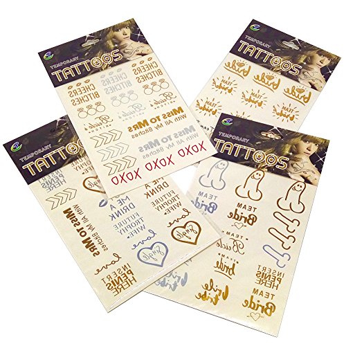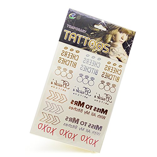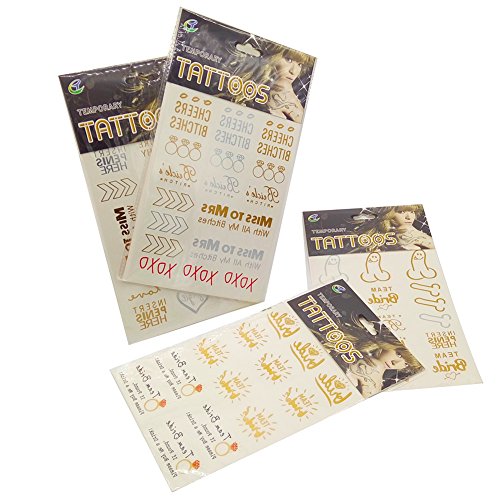 Bride & Bachelorette Party Temporary Flash Tattoos Waterproof Bridal Metallic Women Makeup Art Supplies Decorations Favors Wedding Shower Girls night...