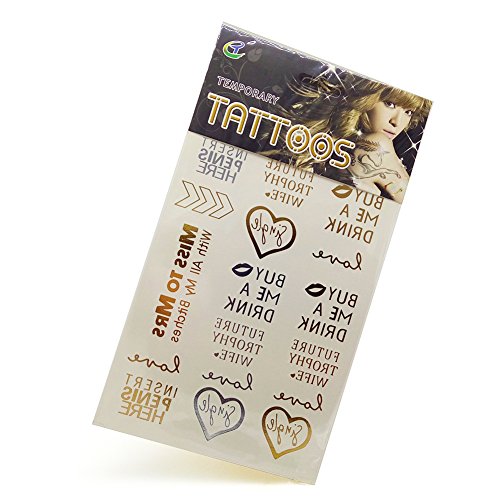 - These tattoos have a gold- or silver-colored metallic shine -- an effect you can't get with ordinary tattoos. The designs stand out beautifully against any skin color, catching the light and drawing attention. For your crazy night out with the girls. Let the world know it's a hen party.