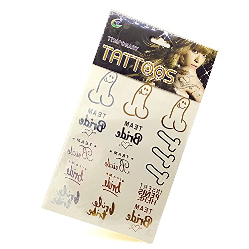 - Comes with 4 sheets of funny, inappropriate, and bad flash tattoos. Everything that you would want to shame your friends with and more! We also threw in some diamonds, hearts and rings for your new sister in law.