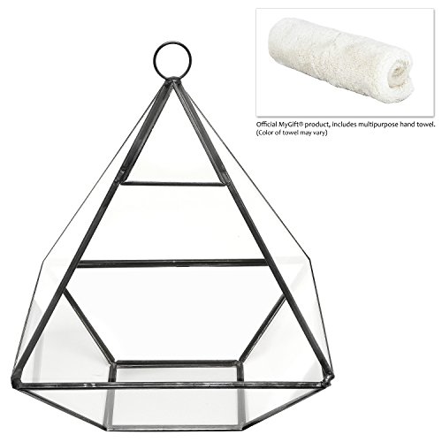 Add modern style and classic elegance to your home with this pyramid-shaped glass terrarium. Made of clear glass and featuring a sturdy metal pyramid shaped frame, this decorative terrarium is perfect for adding a touch of greenery in your home or patio. This contemporary art-piece is also a wonderful way to showcase votive candles and tea lights. Simply hang this beautiful prism from a tree branch, eave, or ceiling or set this glass candle holder on a tabletop for a gorgeous modern accent for your home or patio. This versatile decorative display case is also perfect as a store or restaurant display.**Official MyGift® product includes multipurpose cleaning towel.**